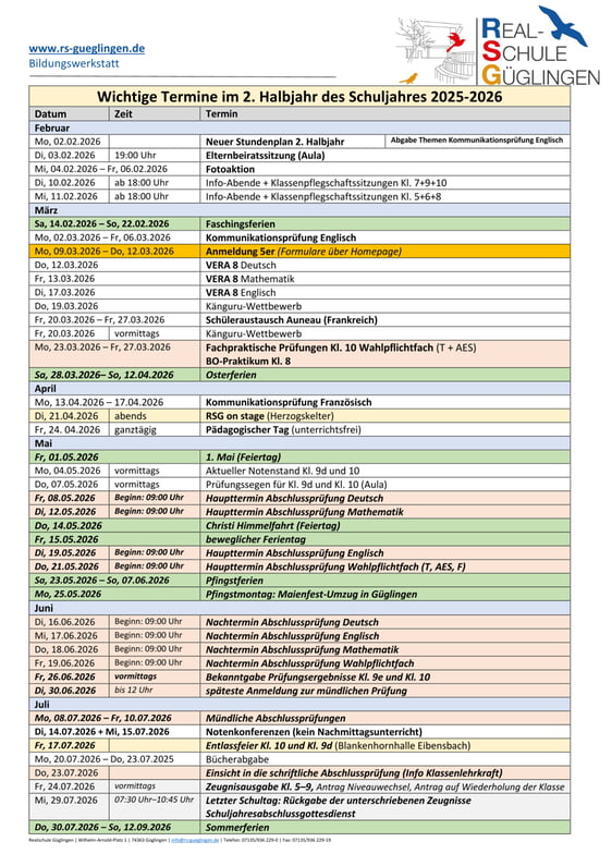 Hier erhalten Sie den Terminplan in tabellarischer Ausführung.